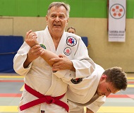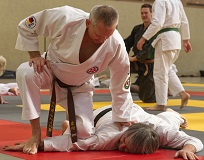 Eine Besonderheit in diesem Jahr war, dass ein Sportler aus der Schweiz anreiste um hier in Düsseldorf vor einer Internationalen Prüfungskommission (Lenz-Präsident EJJU ^ Schweiz / Dr. Knafl- Generalsekretär EJJU ^ Österreich / Stanizewski Vizepräsident EJJU ^ Polen / Bergers Vizepräsident EJJU ^ Deutschland) die Prüfung zum 5.Dan abzulegen. Da ein Teil der anwesenden Großmeister durch die Prüfung eingespannt waren, war es für die anderen Meister und Großmeister selbstverständlich hier in die Bresche zu springen und die weiteren Trainingseinheiten nach der Mittagspause zu übernehmen, um die Prüfungskommission zu entlasten.