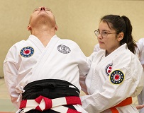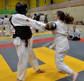 Nachdem die Mitglieder des Sakura-Dojo noch tagsüber die Sportstätte in der Dieter-Forte Gesamtschule vorbereitet und mit 600 qm Matten ausgelegt hatten, fand um 18:00 unter der Leitung von Sensei Karlheinz Bergers ein Selbstverteidigungs Workshop für interessierte nicht Budokas statt. Alle Teilnehmer hatten sichtlich Spaß und konnten erste Eindrücke in der waffenlosen Selbstverteidigung sammeln.