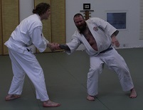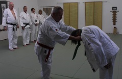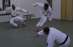 Danach musste jeder Prüfling die für seine angestrebte Graduierung benötigte Selbstverteidigung ohne und mit Waffen einzeln präsentieren.